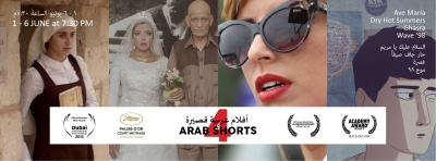 تختتم زاوية #شهرـالسينماـالعربية ب٤ أفلام قصيرة تعتبر من الأعمال الصاعدة في الوطن العربي من مصر ولبنان وتونس وفلسطين. من ١ - ٦ يونيو الساعة ٧:٣٠ م سنعرض ٤ أفلام عربية قصيرة التي نالت العديد من الجوائز العالمية وهي "حار جاف صيفا" لشريف البنداري (مصر)، "السلام عليك يا مريم" لباسل خليل، "موج ٩٨" لايلي داغر و"غصرة" لجميل نجار.